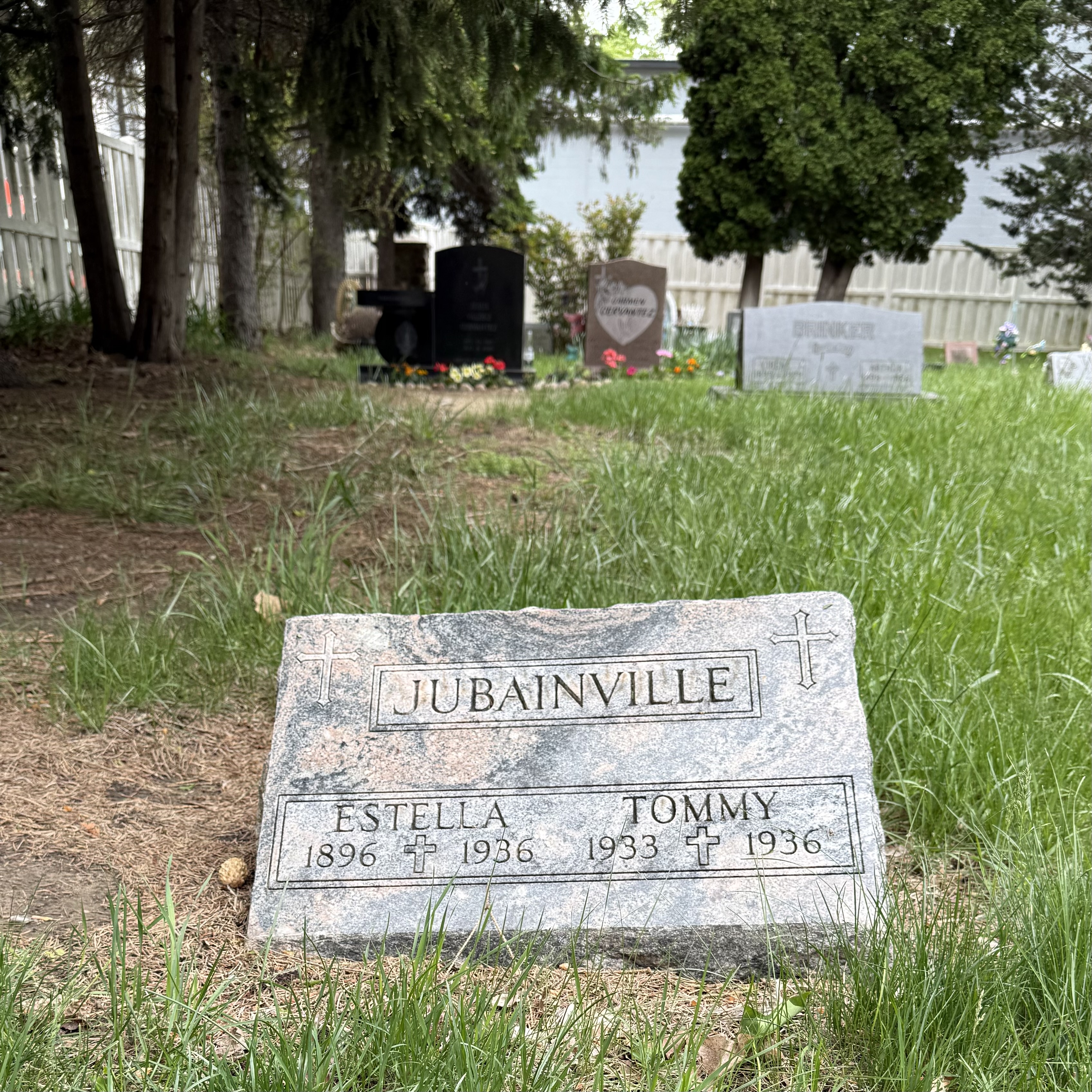 The little headstone marking their grave sits off by itself, bearing the names of Stella and Tommy and their birth and death years. Their funeral Mass took place a few days after the crash at the Catholic church in Imlay City, where the family were parishioners.